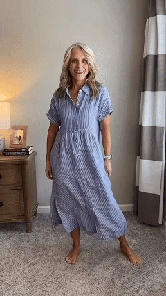 The Striped Lapel Button Down Shirt Dress is designed for the modern woman who cares about sophistication and style. The elegant Maxi long dress is perfect for any occasion.